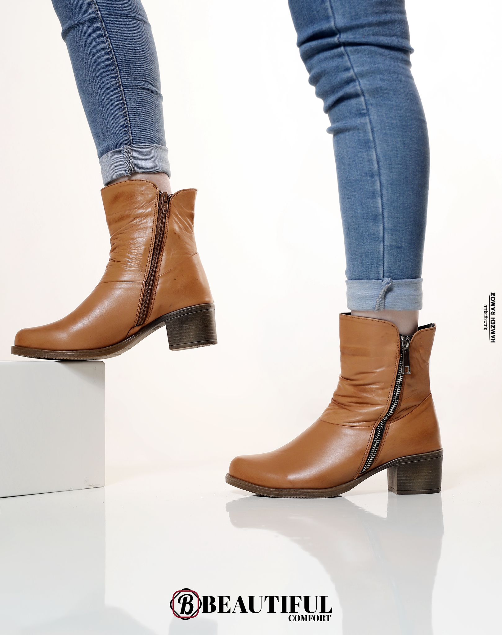 קינדה  - מגף עור צבע חום